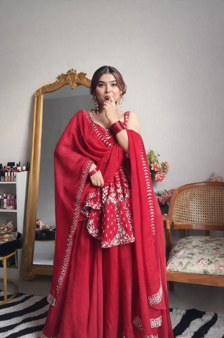 Gulal Georgette Sharara Set with Heavy Sequins & Zari Embroidery