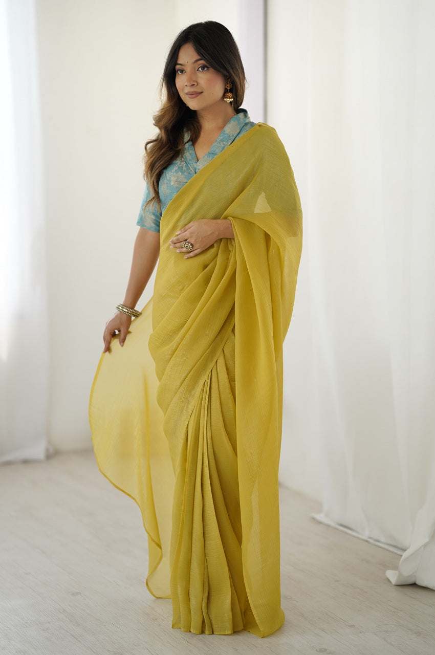Premium Gold Crush Tissue Silk Ready-to-Wear Saree with Stitched Blouse