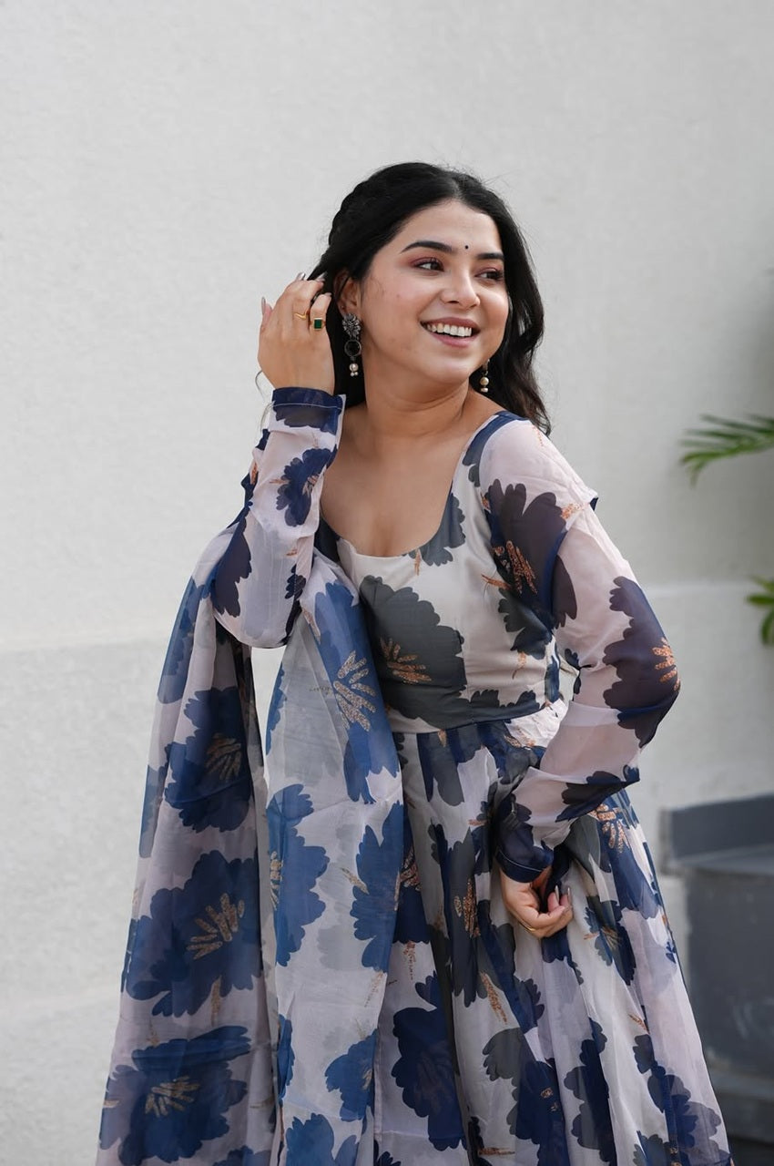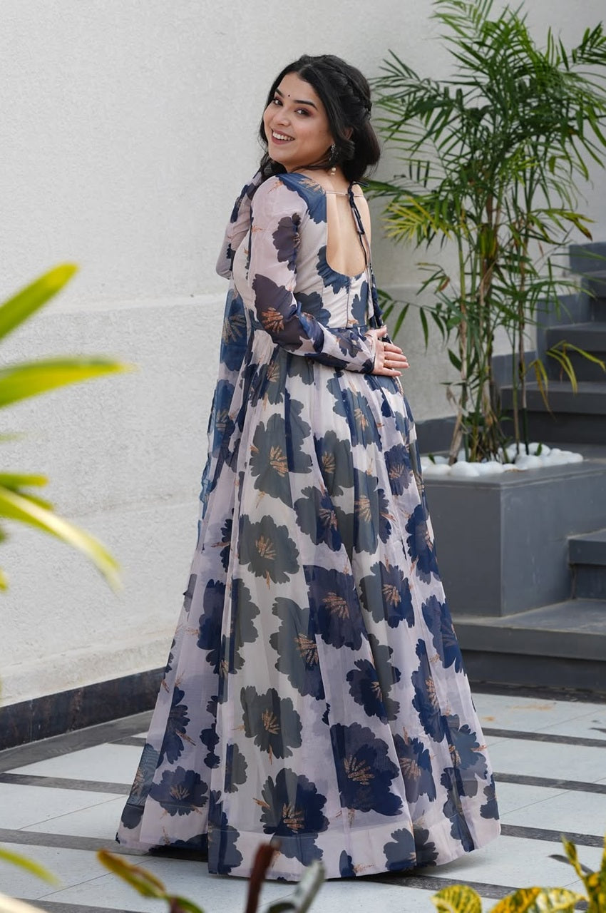 ✔️ Printed Tabby Organza Anarkali Kurta