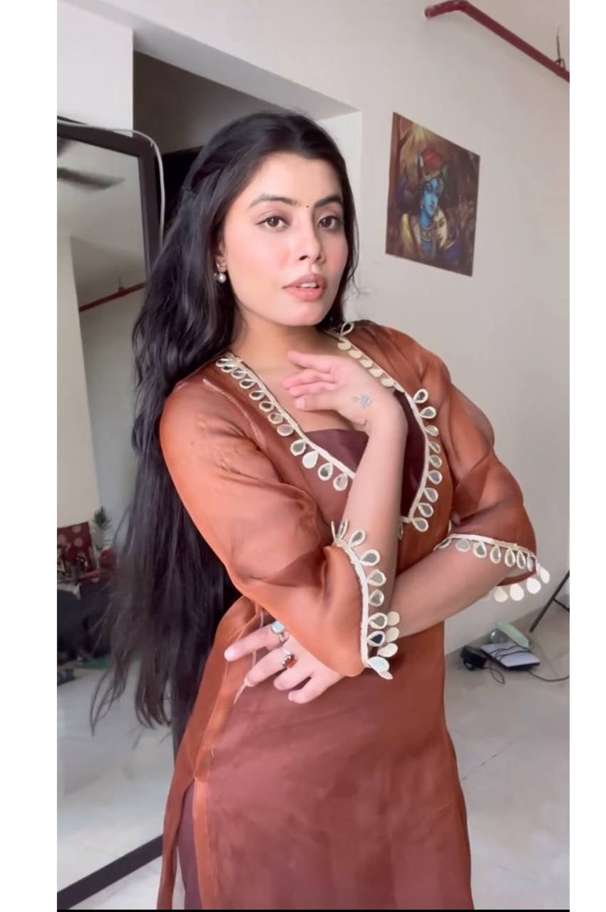 Step into effortless elegance with this Organza Kurti Set featuring delicate mirror lace detailing, paired with sleek Chinon bottoms and a matching blouse. Designed for comfort and style, it’s a versatile outfit perfect for festive gatherings, parties, and special occasions.