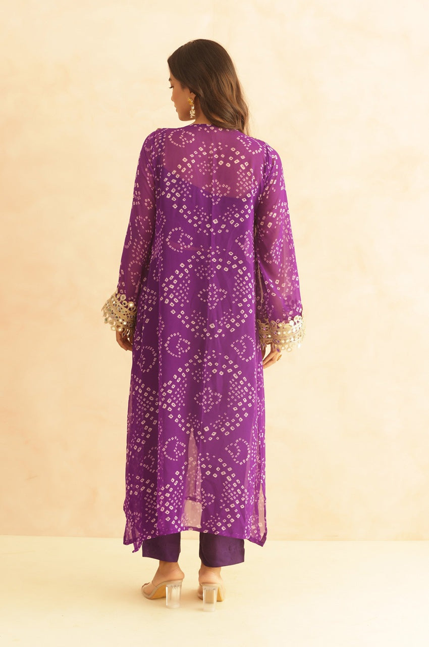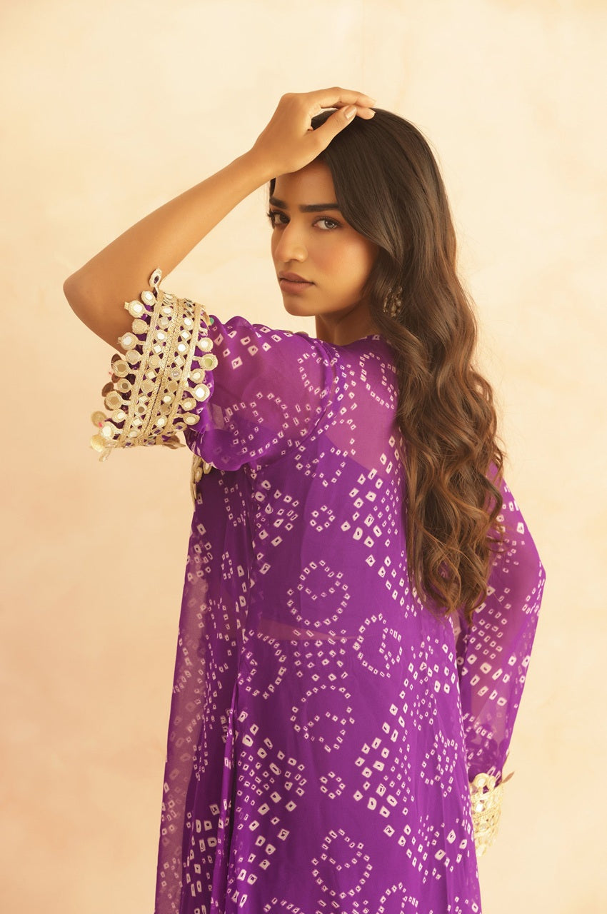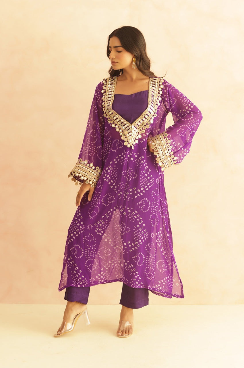 Drape yourself in sophistication with this luxurious Wine-colored designer ensemble, tailored in premium Georgette fabric. The Anarkali-style side-cut kurti radiates charm and elegance, making it an ideal choice for festive and special occasions.