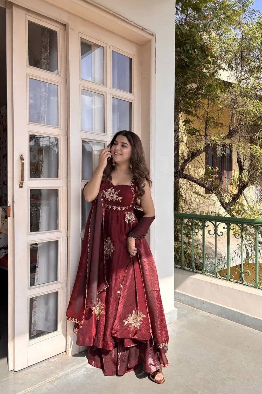 ❤️ Maroon Designer Fendy Silk Suit Set