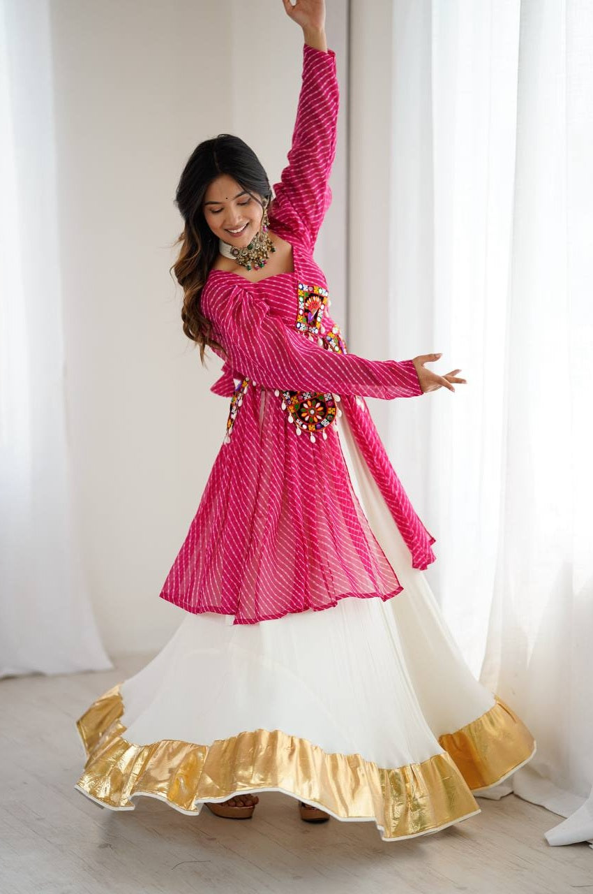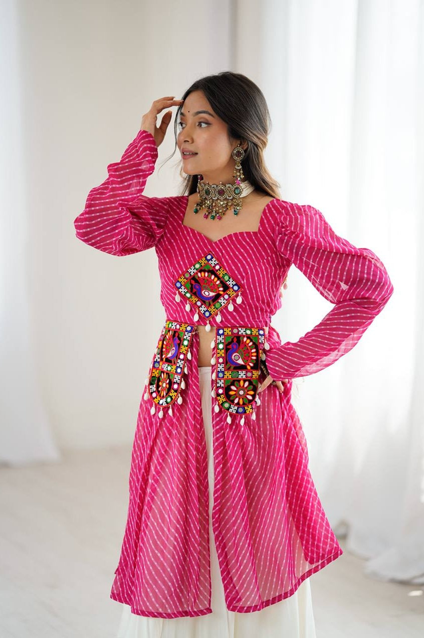 Celebrate the festive season in style with this Lehriya Print Kurti with Lehenga, designed for Navratri and traditional functions. Crafted in premium fabrics with intricate detailing, this outfit is a blend of elegance, comfort, and festive charm.